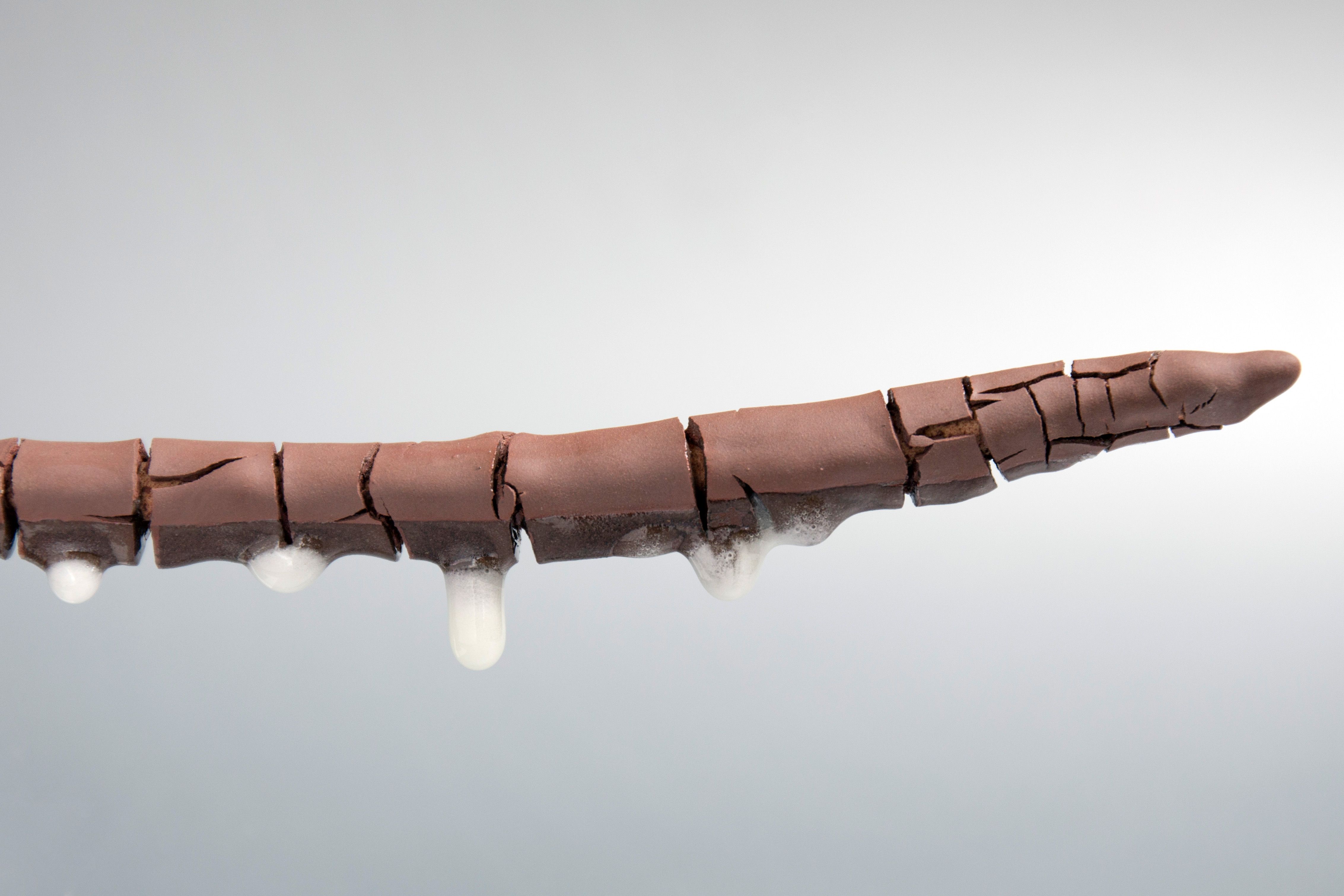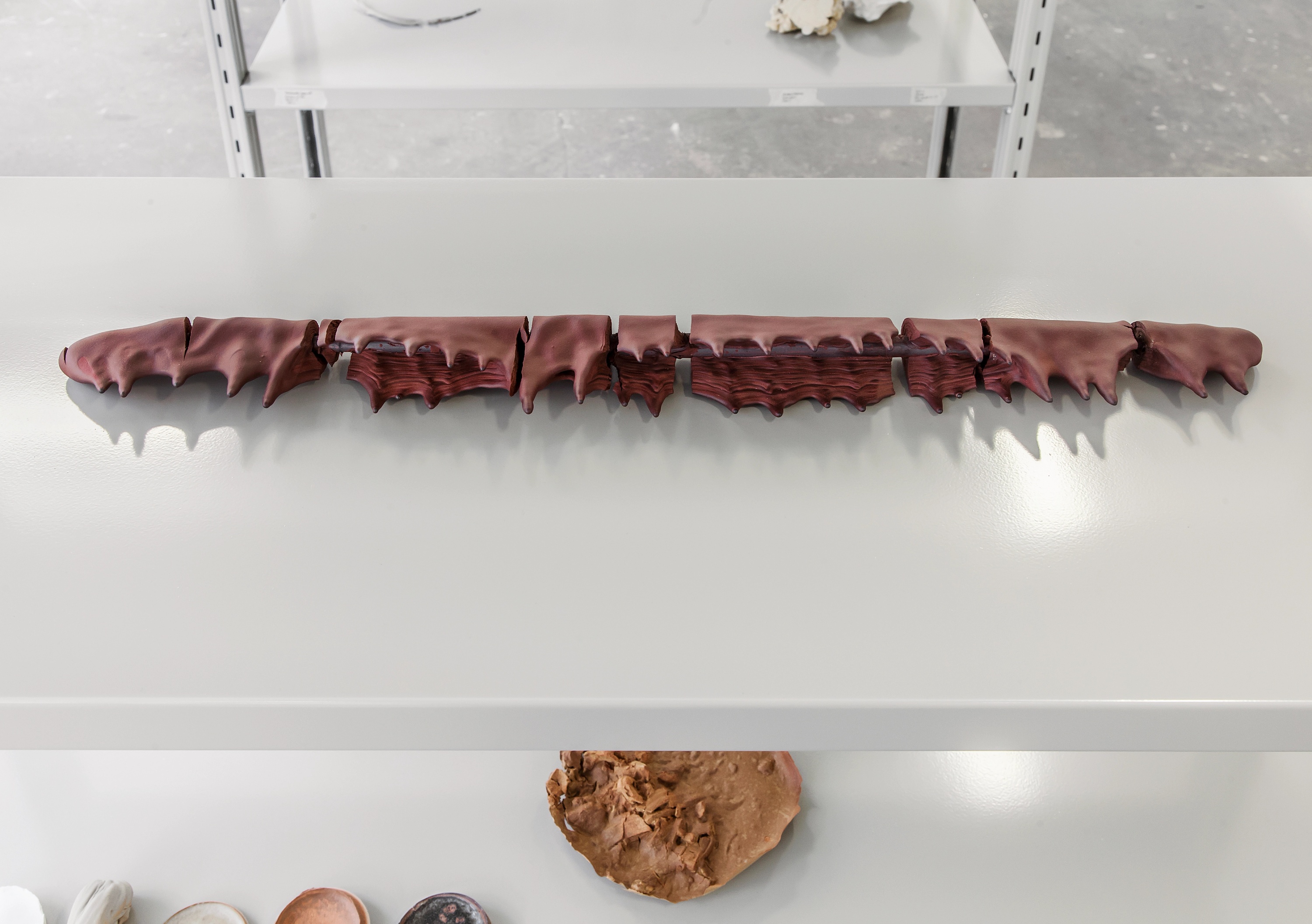 ‘Geoanatomic’ refers to an area of investigation with its basis in both geology and anatomy, in which the antitheses between the two disciplines are erased and challenged. The ceramic materials are geological, but by way of the working methods and the working process, formations of both an anatomical and geological character arise. The simple material is transformed by the artistic treatment and develops into abstract, complex works with a sensual quality.