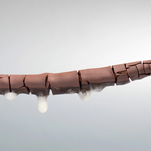 Ane Fabricius Christiansen is interested in investigating the inherent qualities of ceramic materials, and the works are created in a process that can be compared to the simulation of nature in a kind of controlled geology. With unorthodox working methods the clay and the glazes are manipulated to the utmost, and ‘flaws’ are refined. For example she uses it as part of her artistic expression that the clay tends to crack during drying, or melts in the kiln when it is fired at too high a temperature.