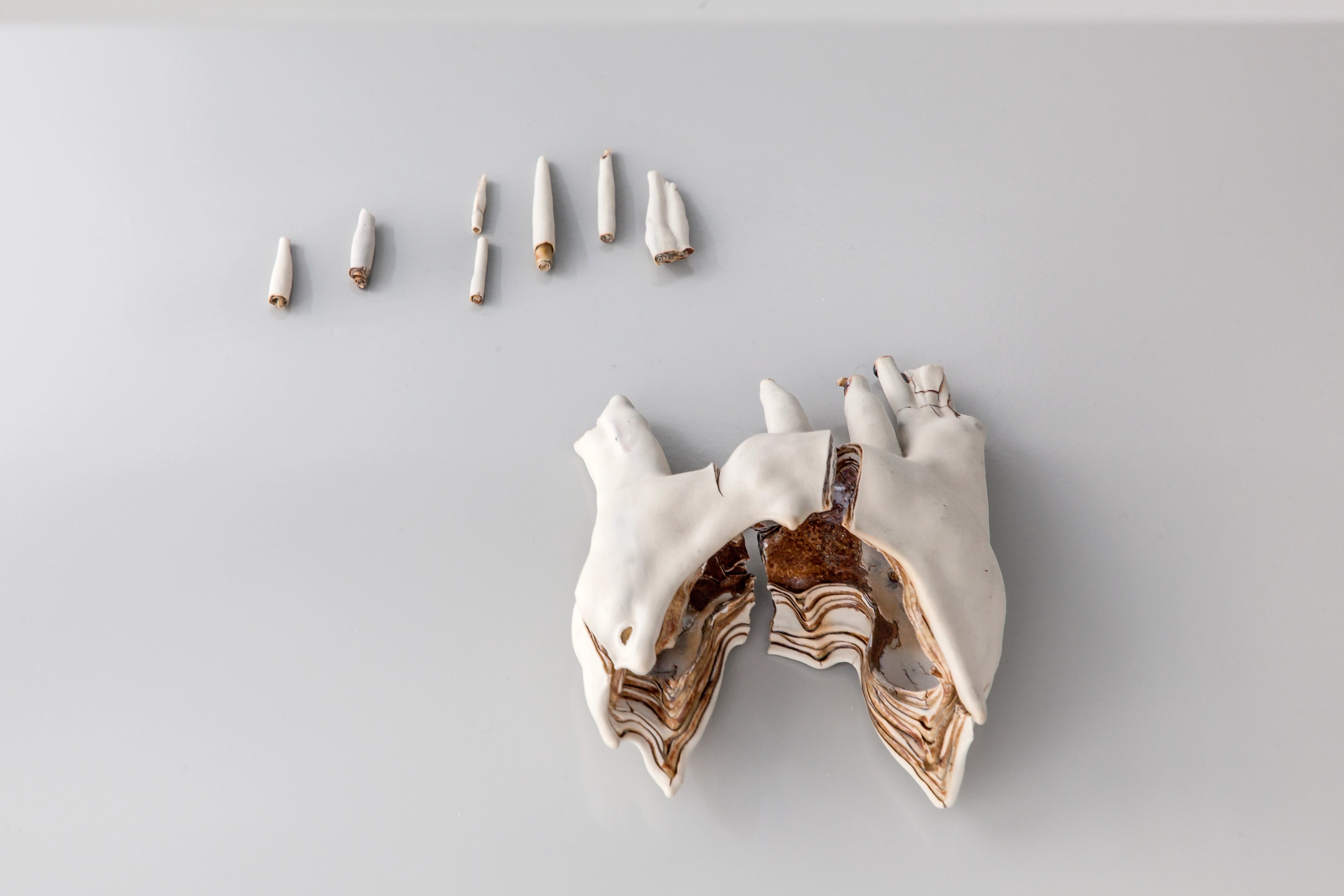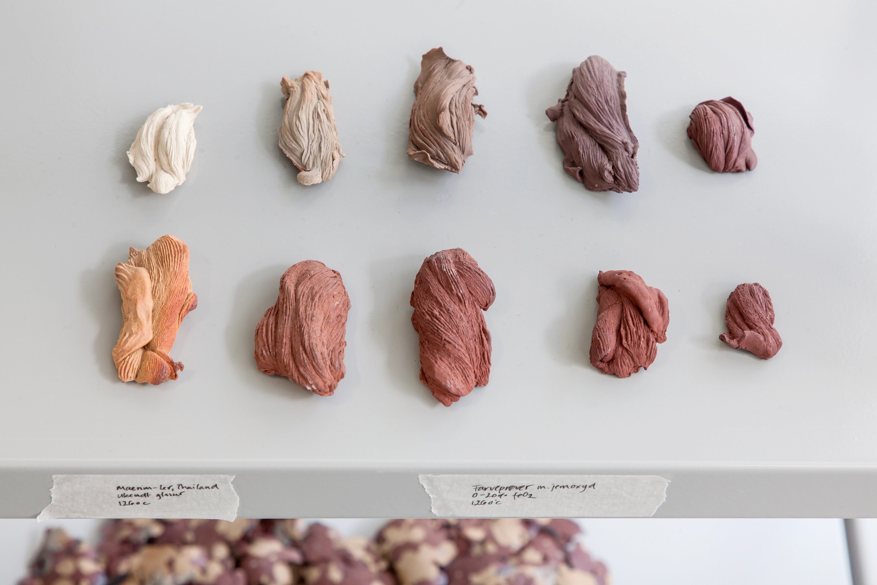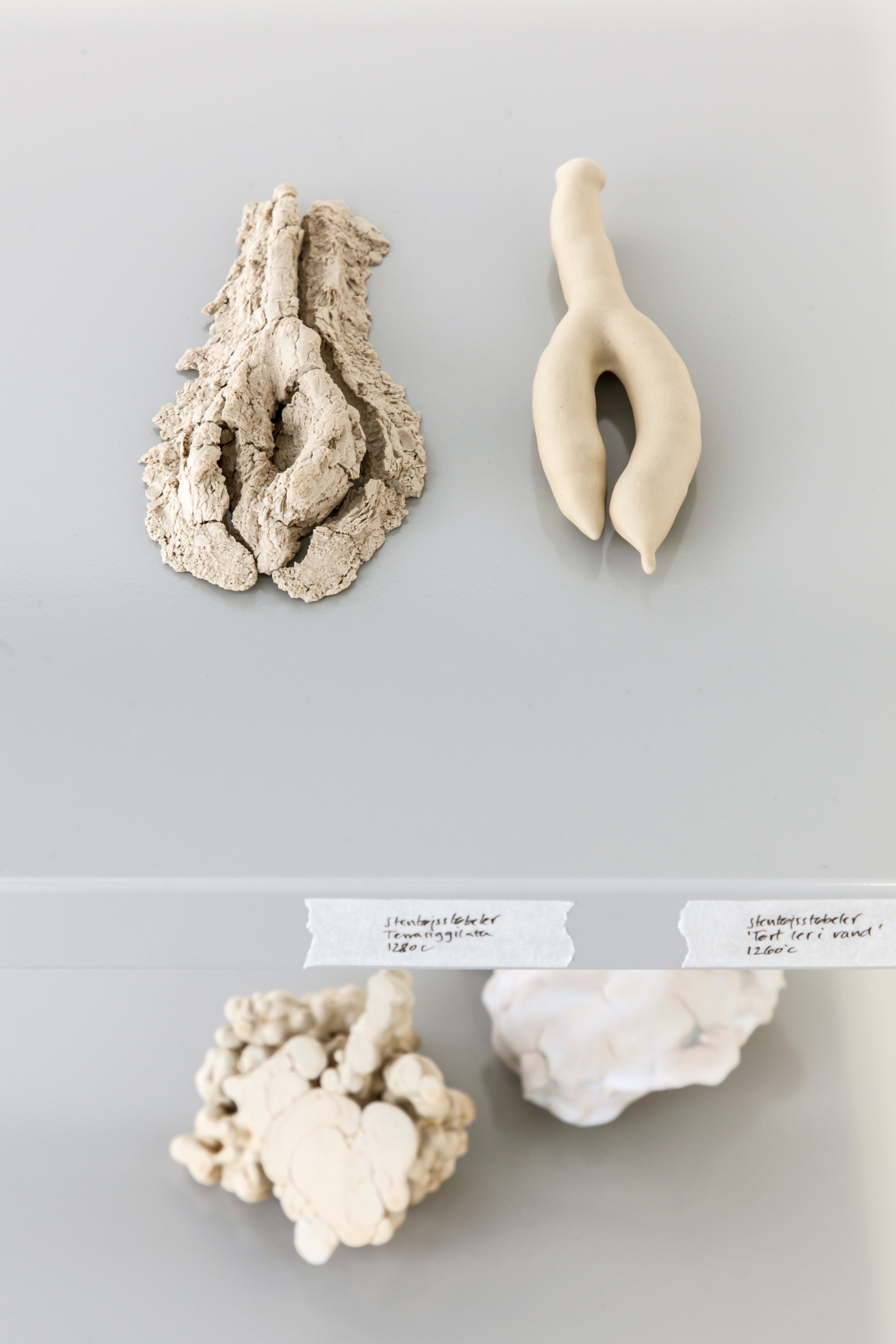 Ane Fabricius Christiansen works experimentally with clay and glazing materials, and the public is invited into a so-called geoanatomic universe in which tactile objects in ceramics balance between the recognizable and the unrecognizable.